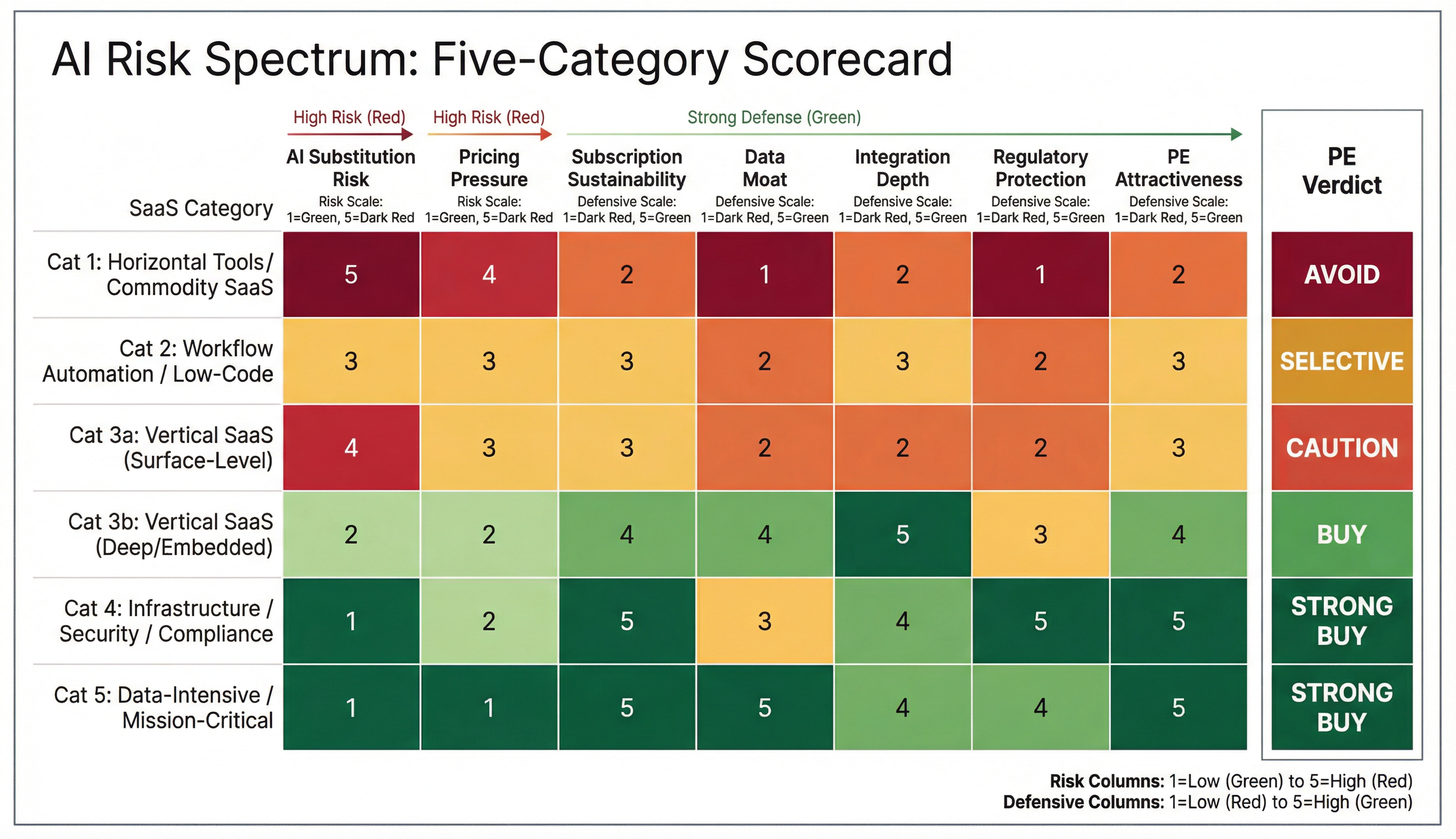 | SaaS Category | AI Substitution Risk | PE Attractiveness |